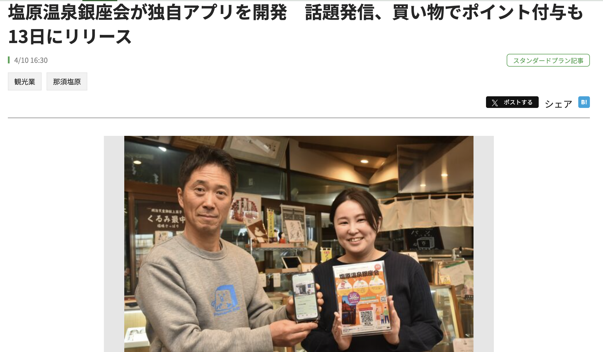関東でも有数の温泉地である塩原温泉。栃木県北部に位置し、関東だけではなく全国的にも有名な温泉地です。毎年約200万人の観光客が訪れるこの塩原温泉の中心に位置する『門前銀座会』のアプリ開発に携わりました。商店会の高齢化も進んでいますが…「まだまだ若者には負けない!」と心意気あふれる方たちばかり!ですが…デジタルへの弱さは否めません。そんな方々でも簡単に使えるように、【シンプル】を最大テーマに、また来たくなる塩原を目指してアプリを更新中。塩原温泉銀座会アプリの成長に皆様のお力を是非お貸しください。